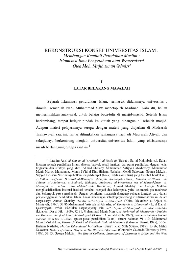 Makalah islamisasi ilmu pengetahuan dalam perspektif filsafat pendidikan islam islamisasi ilmu pengetahuan sudah berlangsung lama dalam dunia islam sejak era klasik hingga kini. Dalam makalah ini akan dibahas tentang islamisasi ilmu pengetahuan. Academia edu is a platform for academics to share research papers.