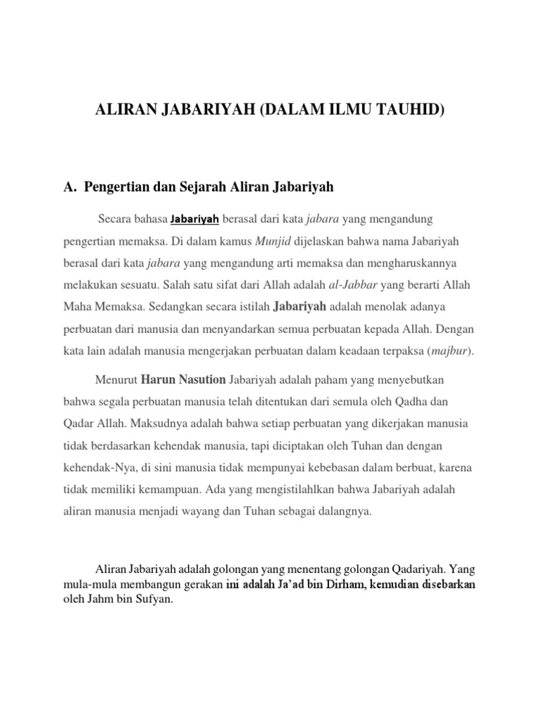 Perbedaan itu kemudian memunculkan berbagai macam aliran yaitu mu tazilah syiah khawarij jabariyah dan qadariyah serta aliran aliran lainnya. Aliran jabariyah dan qadariyah makalah. Aliran jabariyah dan qadariyah makalah ini disusun guna memenuhi tugas mata kuliah ilmu kalam dosen pengampu.