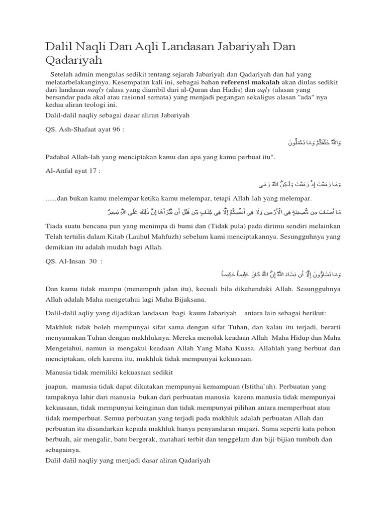 80 Makalah Jabariyah Dan Qadariyah Tahun Ini