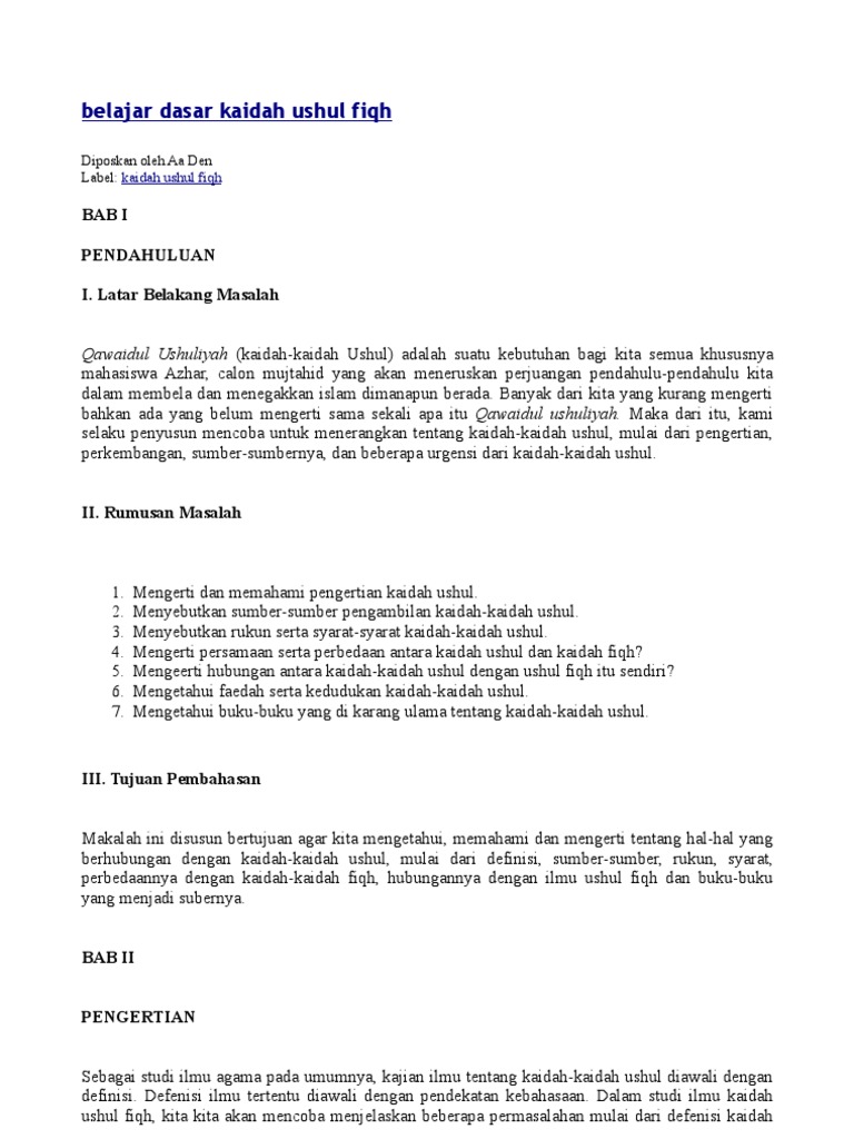 Makalah kaidah kaidah fiqih. Barang siapa menghendaki pahala dunia niscaya kami berikan kepadanya pahala dunia itu dan barang siapa menghendaki pahala akhirat kami berikan pula kepadanya pahala akhirat qs. Sedangkan ushul fiqih adalah kaidah kaidah yang dibutuhkan untuk mengeluarkan hukum dan perbuatan perbuatan manusia yang di kehendaki oleh fiqih. Oleh sebab itu imam syafi i adalah orang pertama yang membukukan ilmu ushul fiqih yang diberi nama al risalah.