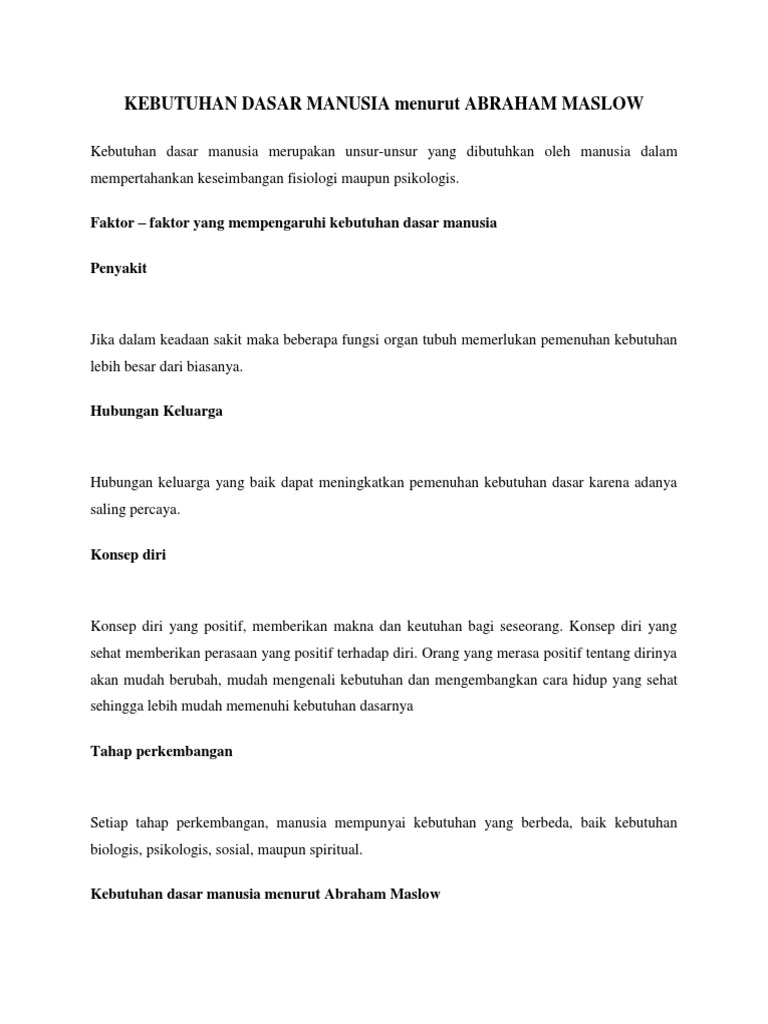 20 Makalah Kebutuhan Dasar Manusia Menurut Abraham Maslow Pdf Terbaru