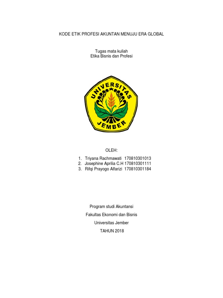 View kode etik profesi akuntan menuju era global atillah rahman 180810301236 docx from economy 123456 at university of jember. Teori utilitarisme yang mengatakan perbuatan adalah baik jika membawa manfaat manfaat disini bukan hanya satu atau dua orang saja melainkan manfaat manfaat disini bukan hanya satu atau dua orang saja melainkan manfaat untuk masyarakat luas nampak terlihat. Kode etik profesi akuntan menuju era global.