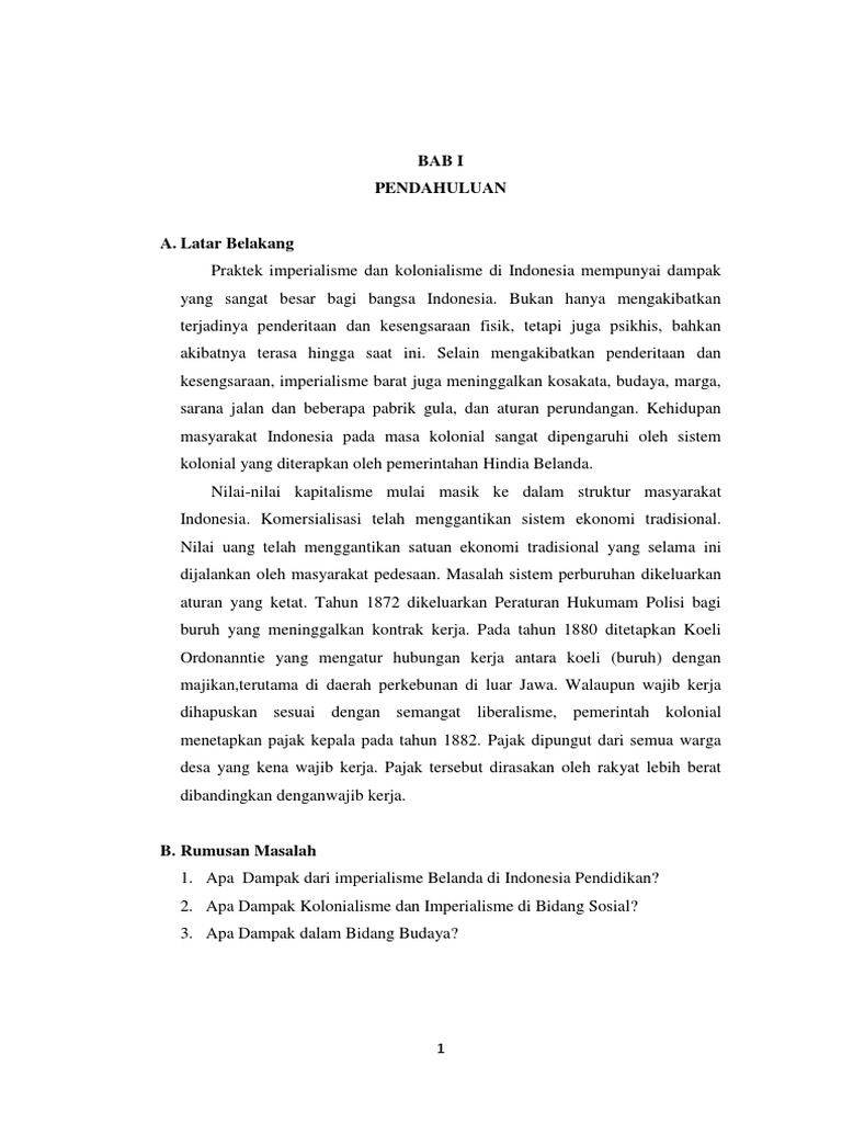 Makalah kolonialisme dan imperialisme di indonesia. Kolonialisme dan imperialisme barat memberikan pengaruh yang sangat besar terhadap bidang politik bidang ekonomi bidang social bidang budaya. Kolonialisme dan imperialisme sendiri sudah berkembang sejak abad ke 15 oleh bangsa eropa ke seluruh dunia dan akhirnya masuk ke indonesia. Sampai seantero dunia mencium akan kesuburan dan kemakmuran indonesia.
