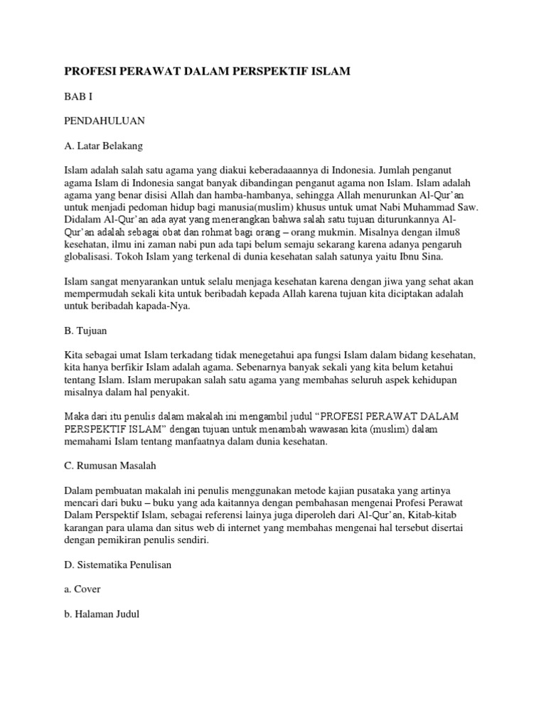 Puji dan syukur penulis panjatkan kehadirat allah swt karena atas berkat dan karunia nya sehingga penulis dapat menyelesaikan makalah ini yang merupakan sebuah makalah kesehatan terkait tentang konsep sehat sakit. Makalah konsep sehat sakit dalam islam 1. Bab i pendahuluan 1 1 latar belakang islam merupakan agama yang mengatur seluruh aspek kehidupan manusia untuk mengatur kemakmuran di bumi guna menuju kebahagiaan dunia dan akhirat.