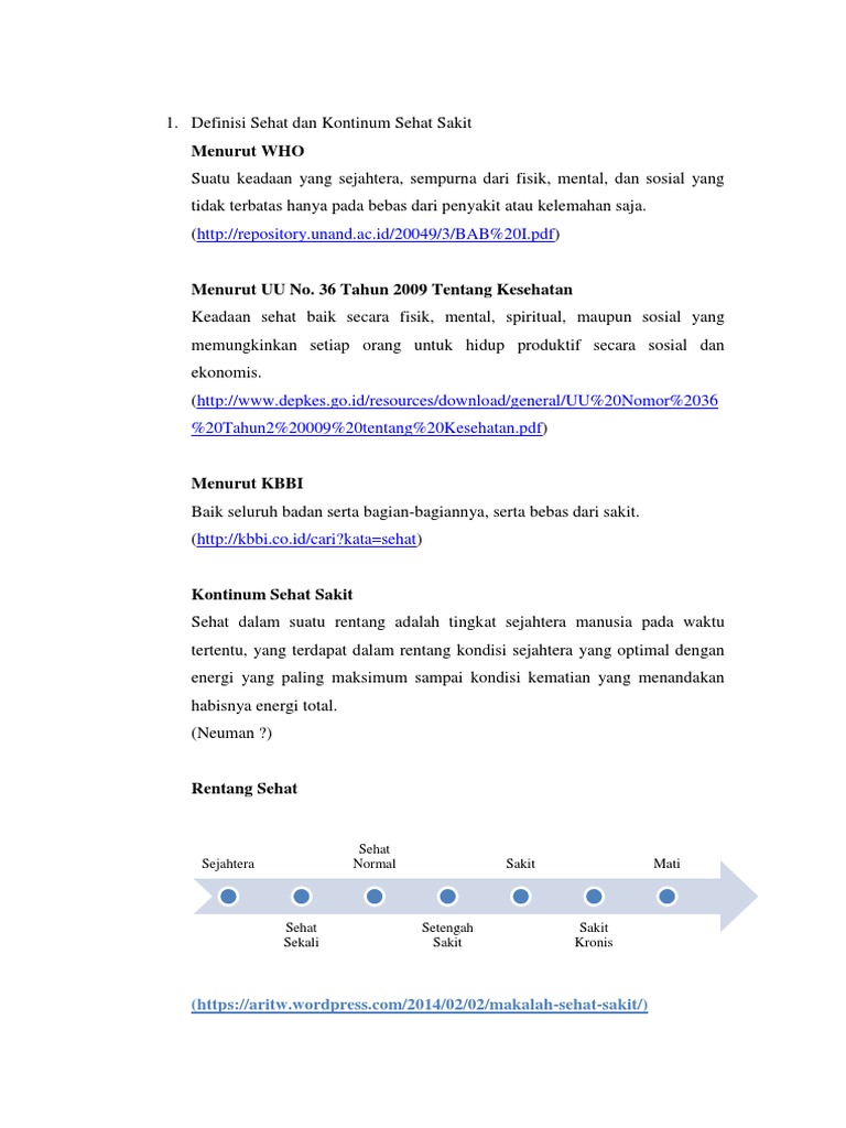 Makalah konsep sehat sakit pdf. Konsep sehat dan sakit konsep sehat sakit menurut who menurut who 1947 sehat itu sendiri dapat diartikan bahwa suatu keadaan yang sempurna baik secara fisik mental dan sosial serta tidak hanya bebas dari penyakit atau kelemahan who 1947. Dalam menyusun makalah ini kami sebagai penyusun banyak sekali menghadapi berbagai kendala namun berkat do a kerja keras serta bimbingan dari berbagai pihak penyusun. Konsep sehat sakit adalah konsep yang kompleks dan multi interpretasi banyak faktor yang mempengaruhi kondisi sehat maupun sakit.