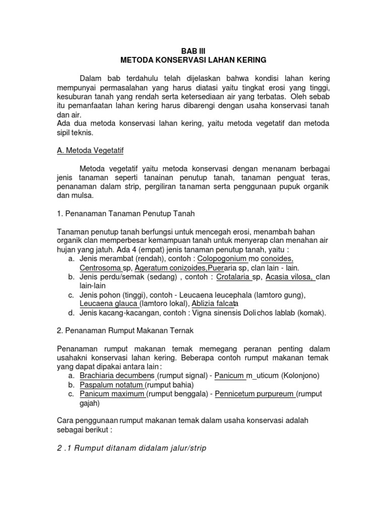 Berbagaitindakan konservasi tanah juga merupakan tindakan konservasi air. 1 2 tujuan adapun tujuan tujuan yang ingin dicapai dalam pembuatan makalah ini adalah sebagai berikut. Metode vegetatif untuk konservasi tanah dan air termasuk antara lain.