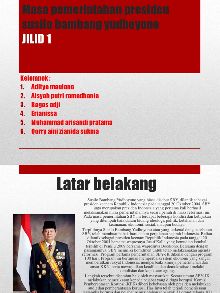 Makalah masa pemerintahan sby. Langkah presiden sby untuk merangkul parpol parpol yang kalah dalam pemilu 2009 adalah bagian dari kebijakan soft power atau kebijakan untuk bergotong royong dalam membangun bangsa dan negara. Kurangnya pengetahuan para siswa tentang tentang perkembangan politik ekonomi sosial budaya dan pendidikan pada masa susilo bambang yudhoyono periode 1 dan 2 dan dengan adanya makalah ini diharapkan dapat dijadikan pedoman agar para siswa terutama siswa di sma negeri 1 nama sekolah kalian mengetahui keadaan pra kepemimpin presiden sby berlangsungnya kepemimpinan presiden sby. Dan hasil dari sistem pemerintahan sby dengan demokrasi ini indonesia ditempatkan sebagai sebagai free country negara bebas di asia sejajar dengan jepang korea selatan india dan taiwan.