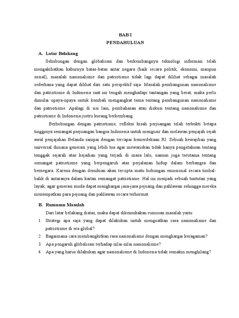 Dewasa ini semakin maraknya globalisasi mengakibatkan banyak sekali pengeruh negatif dan positif. 1 bab i pendahuluan a. Pengaruh globalisasi di berbagai bidang kehidupan seperti kehidupan politik ekonomi ideologi sosial budaya dan lain lain akan mempengaruhi nilai nilai nasionalisme terhadap bangsa.