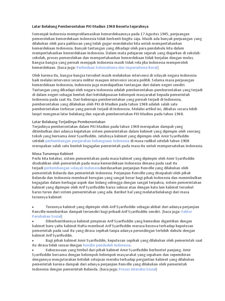Makalah pemberontakan pki madiun lengkap. Makalah pemberontakan g 30 s pki lengkap makalah sejarah perkembangan g30s pki makalah tentang pemberontakan pki. Pemberontakan pki madiun ringkasan makalah tujuan penyebab musso tokoh kawakan komunis yang cukup lama bermukim di uni sovyet kembali ke indonesia bersama suprisno pada tanggal 10 agustus 1948 tatkala bertemu presiden soekarno presiden soekarno presiden memintanya agar bersedia membantu dengan memperkuat negara dalam melancarkan revolusi. Makalah sejarah tentang pemberontakan pki madiun.