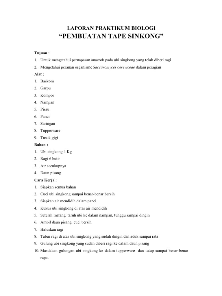 Makalah pembuatan tape singkong. Kata pengntar puji dan syukur kita panjatkan kehadirat allah swt. Cocok untuk dimakan secara langsung bisa juga sebagai bahan tambahan kue hingga minuman. Melalui makalah ini saya ingin menjelaskan secara sederhana tentang proses pembuatan tape khususnya bagi generasi muda.