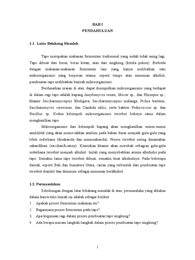 Makalah pembuatan tape bioteknologi makalah. Ragi adalah bibit jamur yang digunakan untuk membuat tape. Makalah ini membantu untuk lebih jauh mengetahui tentang bagaimana proses pembuatan tape singkong dan manfaat yang ada di balik tape singkong sebagai proses fermentasi makanan.