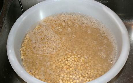 Kedelai setelah dilakukan sortasi untuk memilih kedelai yang baik dan bersih dicuci sampai bersih kemudian direbus yang waktu perebusannya berbeda beda tergantung dari banyaknya kedelai dan biasanya berkisar antara 60 90 menit.