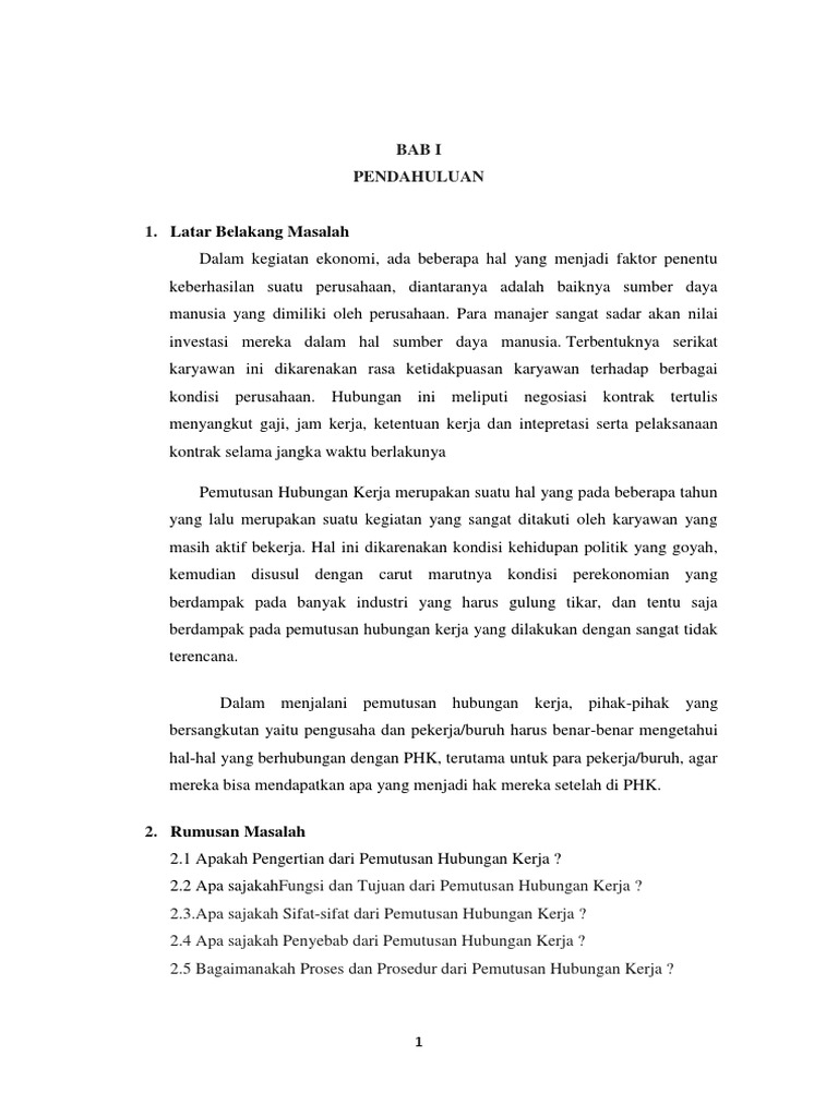 Makalah pemutusan hubungan kerja. Academia edu is a platform for academics to share research papers. Menurut tulus 1993 pemutusan hubungan kerja separation adalah mengembalikan karyawan ke masyarakat sedagkan menurut hasibuan 2001 pemberhentian adalah pemutusan hubungan kerja seseorang karyawan. 13 tahun 2003 sebagai.