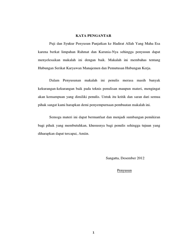 Pemutusan hubungan kerja disusun sebagai tugas materi kuliah pengantar ilmu hukum indonesia oleh. Puji syukur kami panjatkan kepada allah swt yang atas seizin nya kami dapat menyelesaikan penyusunan makalah yang berjudul serikat karyawan dan pemutusan hubungan kerja phk kami menyadari makalah ini masih terdapat banyak kekurangan sehingga kami berharap akan mendapat masukan dari semua pihak dosen rekan rekan dari kelompok lain dan pembaca guna perbaikan di masa masa yang akan. 1310010004 fakultas hukum universitas muhammadiyah purwokerto 2013 1.