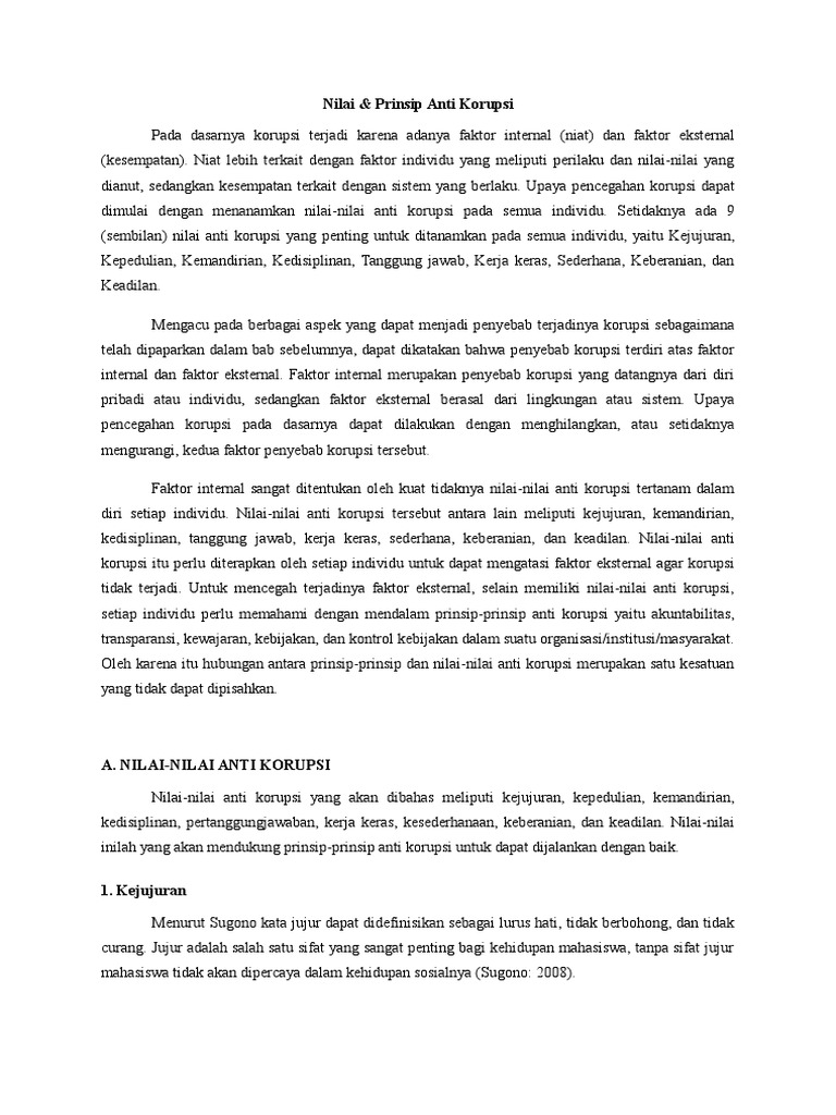 Dan saatnya kita menanamkan pendidikan karakter anti korupsi untuk generasi muda saat ini berikut ini adalah artikel anti korupsi makalah pendidikan karakter anti korupsi. Belum lagi korupsi nilai demi untuk memudahkan peserta didiknya lolos snmptn pihak sekolah rela merevisi nila nilai rapotnya. Doc makalah pendidikan antikorupsi reza fahlevi.