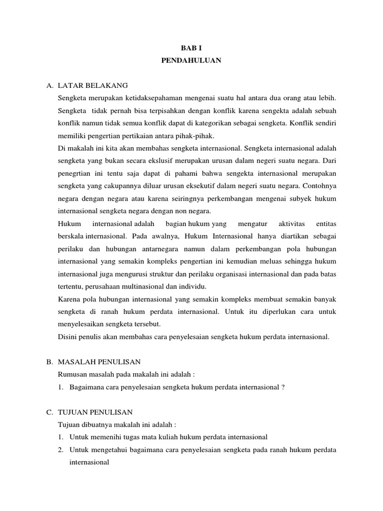Arbitrase menurut pasal 1 angka 1 undang undang nomor 30 tahun 1999 adalah cara penyelesaian suatu sengketa perdata di luar pengadilan umum yang didasarkan pada perjanjian arbitrase yang dibuat secara tertulis oleh para pihak yang bersengketa. Academia edu is a platform for academics to share research papers. Makalah penyelesaian sengketa internasional bab i pendahuluan.
