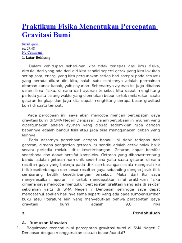 Makalah percepatan gravitasi bumi. Nilai g dapat diukur dengan berbagai metode. Bentuk bentuk paling sederhana. Jari jari bumi di wilayah ini semakin kecil.