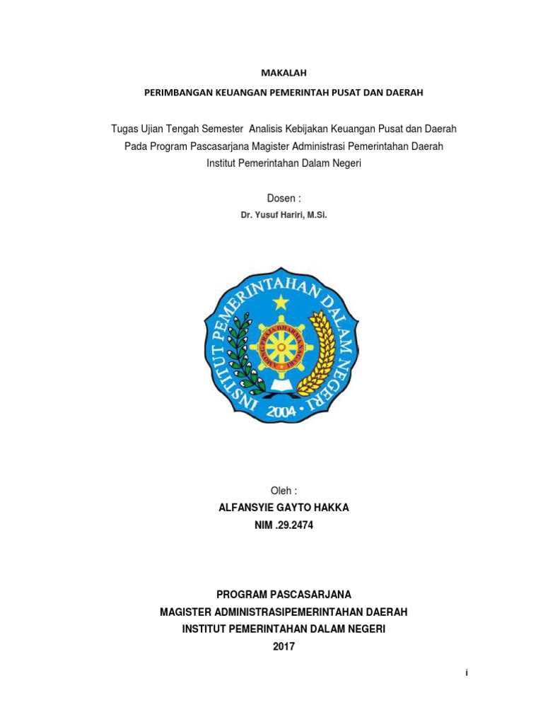 Makalah perimbangan keuangan pusat dan daerah. Momentum dilahirkannya dpd ri pilkadal dan berbagai produk konstitusi era reformasi lainnya. Menurut uu nomor 33 tahun 2004 tentang perimbangan keuangan pusat dan daerah yang dimaksud dengan perimbangan keuangan antara pemerintah pusat dan pemerintahan daerah adalah suatu sistem pembagian keuangan yang adil proporsional demokratis transparan dan efisien dalam rangka pendanaan penyelenggaraan desentralisasi dengan mempertimbangkan potensi kondisi dan kebutuhan daerah serta. Persepsi dan paradigma dalam pembangunan daerah ke depan antara pemerintah pusat dan daerah serta seluruh elemen masyarakat.