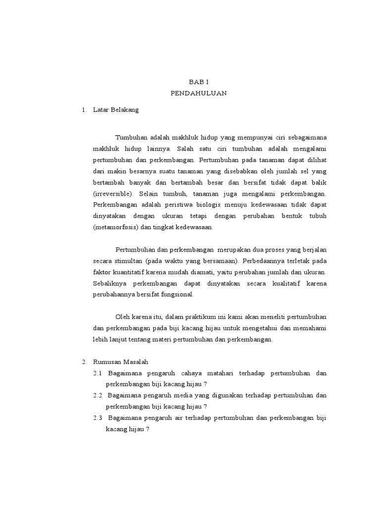 Makalah kacang hijau. Proses pertumbuhan dan perkembangan pada tumbuhan diawali dengan aktivitas sintetis bahan mentah berupa molekul sederhana dan molekul kompleks. Pada hari pertama kacang hijau 1 2 3 4 dan 5 belum terjadi perubahan atau biji kacang hijau belum tumbuh.