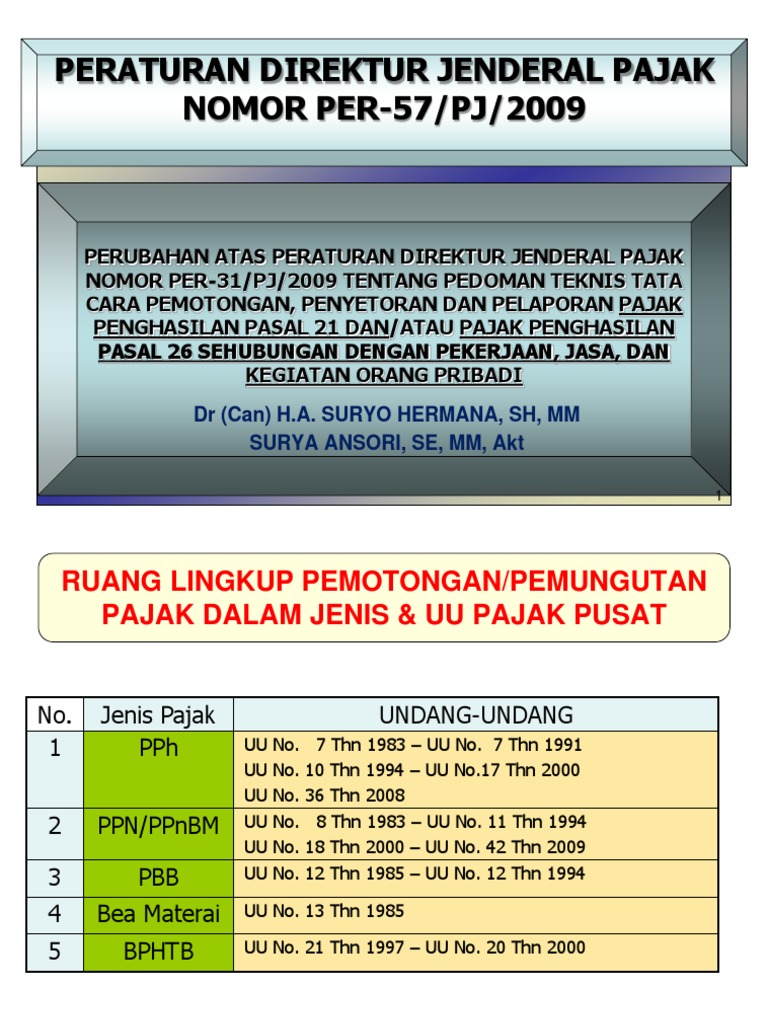 Pemotong pph pasal 21 dan atau pph pasal 26 dan penerima penghasilan yang dipotong pph pasal 21 wajib mendaftarkan diri ke kantor pelayanan pajak sesuai denan ketentuan yang berlaku. Pajak penghasilan pasal 21 atau biasa disebut dengan pph pasal 21 adalah pajak atas penghasilan berupa gaji upah honorarium tunjangan dan pembayaran lain dengan nama dan dalam bentuk apapun sehubungan dengan pekerjaan atau jabatan jasa dan kegiatan yang dilakukan oleh orang pribadi subjek pajak dalam negeri. Dasar hukum dan pengertian pph pasal 21 pajak penghasilan pasal 21 atau biasa di sebut dengan pph pasal 21 adalah pajak atas penghasilan berupa gaji upah honorarium tunjangan dan pembayaran lain dengan nama dan dalam bentuk apapun sehubungan dengan pekerjaan atau jabatan jasa dan kegiatan yang dilakukan oleh orang pribadi subjek pajak.
