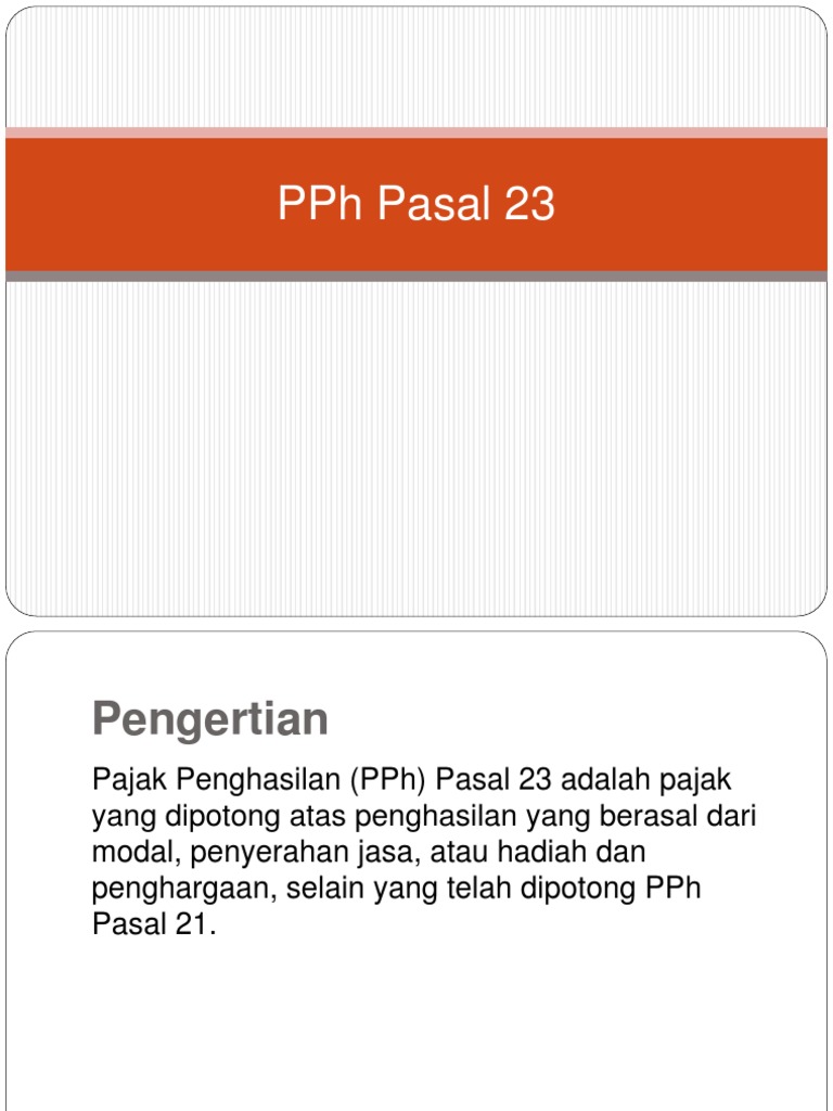 Pajak penghasilan pasal 23 pph pasal 23 adalah pajak yang dikenakan pada penghasilan atas modal penyerahan jasa atau hadiah dan penghargaan selain yang telah dipotong pph pasal 21. Saat terutangnya pajak penghasilan pasal 23 uu pph adalah pada saat pembayaran saat disediakan untuk. Pajak merupakan iuran wajib yang dipungut dari warga negara indonesia yang bersifat memaksa berdasarkan undang undang.