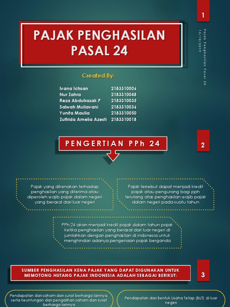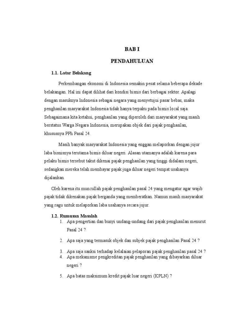 Makalah pph pasal 24 pdf. Pph pasal24 andi wijayanto s sos m si pengertian ypajak penghasilan pasal 24 mengatur tentang perhitungan besarnya pajak atas penghasilan yang terutang atau dibayarkan di luar negeri yang dapat dikreditkan terhadap pajak penghasilan yang terhutang atas seluruh wajib pajak dalam negeri. Makalah pph pasal 24 dan 25. Atas penghasilan yang diterima atau diperoleh dari luar negeri yang boleh dikreditkan terhadap pph yang terutang atas seluruh penghasilan wp dalam negeri dn.