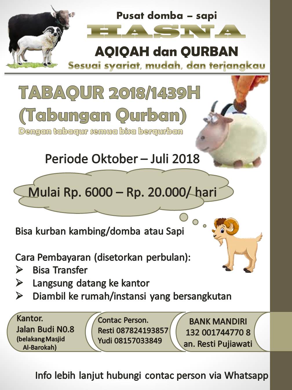 Makalah qurban dan aqiqah lengkap. Makalah tentang qurban makalah tentang kurban. Syarat ketentuan hewan aqiqah ketentuan ataupun syarat hewan aqiqah sebanding halnya dengan ketentuan atau syarat hewan qurban yakni umurnya memadai maksudnya sudah memadai atau lebih dari satu tahun dan hewan terbilang sehat secara fisik tanpa adanya cacat di hewan aqiqah tersebut. Bukan berqurban karena riya agar dipuji puji sebagai orang kaya orang dermawan atau politisi yang peduli rakyat dan sebagainya.