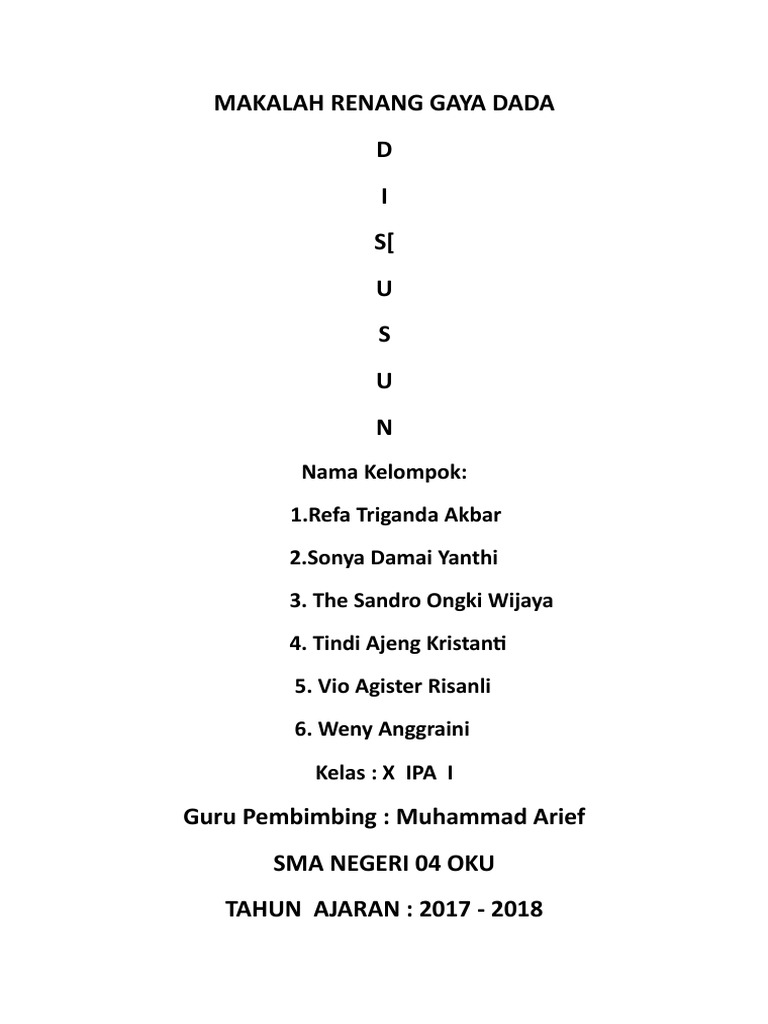 Dalam penyusunan makalah ini penulis hanya membahas renang gaya dada dan gaya bebas. Renang gaya bebas juga terdiri dari beberapa gerakan lagi seperti gaya trudgen di inggris yaitu renang gaya bebas dengan gerakan kai menggunting seperti gaya samping dan bukan gerakan kaki lurus melecut naik turun layaknya renang gaya bebas saat ini. Makalah ini disusun berdasarkan referensi dari buku informasi internet serta pemahaman penulis tentang renang khususnya pada gaya bebas.