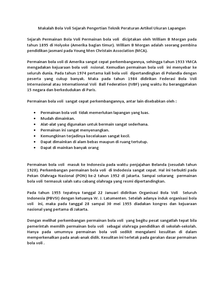Salah satunya ialah olahraga bola voli. Morgan di ymca pada tanggal 9 februari 1895 di. Puji dan syukur kehadirat allah swt yang mana berkat rahmat dan karunia nya lah kami dapat menyesaikan penulisan makalah permaina dan olahraga bola voli yang penulis susun untuk memenuhi salah satu tugas mata pelajaran penjas orkes.