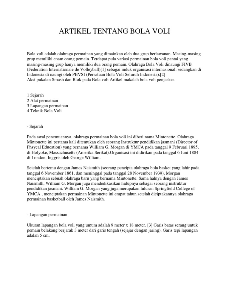 Isi dari postingan ini bola voli sejarah pengertian teknik peraturan makalah artikel ukuran lapangan. Namun pada perjumpaan sebelumnya yang mana kami juga telah menyampaikan materi makalah tentang permainan bola besar yuk langsung kita simak pembahasan di bawah ini. Pada awal penemuannya olahraga permainan bola voli ini diberi nama mintonette.