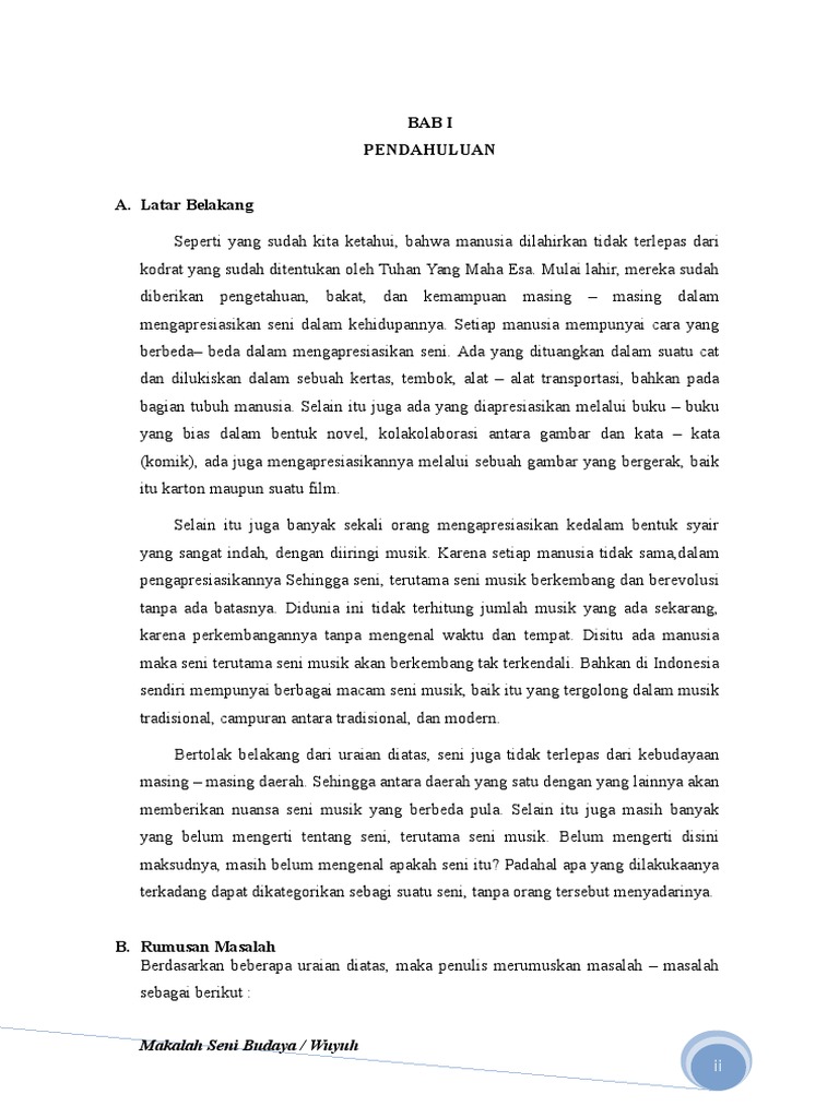 Mulai dari janin masih di dalam perut sampai saat kita. Contoh makalah seni budaya ini bisa didownload dalam format document atau docx yaitu format file yang bisa diedit dengan menggunakan aplikasi pengolah kata atau software word processor yang biasa digunakan di komputer atau laptop anda untuk mengetik yaitu seperti microsoft office open office atau pun software word processor lain misalnya untuk android seperti polaris office microsoft. Ahmad fauzan akbar maulana anik dewi puji lestari hardison muhammad andri roni setiawan smk negeri 3 sampit x multimedia 2 sampit 14 januari 2016 kata pengantar puji syukur kami panjatkan ke hadirat tuhan yang maha esa karena dengan karunia nya kami dapat menyelesaikan makalah ini.
