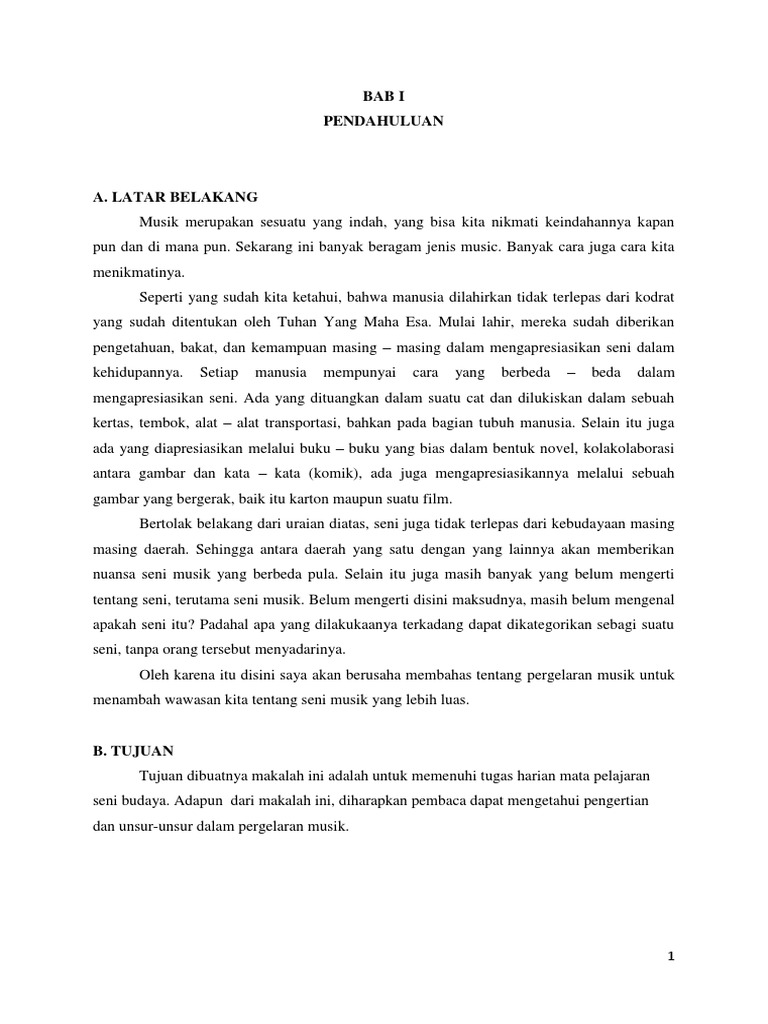 Makalah seni budaya musik. Latar belakang disadari atau tidak dalam kehidupan kita sehari hari banyak melibatkan musik karena definisi paling mendasar dari musik itu sendiri adalah merupakan bunyi yang teratur. Makalah ini berisikan tentang pengertian seni budaya dan pengertian seni tari musik teater dan seni rupa serta cabang seni rupa yaitu seni rupa murni dan terapan. Makalah seni musik tradisional seni budaya bab 1 pendahuluan 1 1 latar belakang masalah indonesia adalah negara yang besar negara yang kaya akan nilai budaya dan tradisi salah satu suku di indonesia adalah suku sunda yang berada di pulau jawa tepatnya di jawa barat.