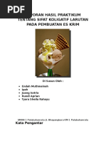 Penilitian ini dilakukan pada pembuatan es krim kenaikan titik didih dan penurunan titik beku. Sifat koligatif larutan meliputi tekanan uap penurunan titik beku kenaikan titik didih dan tekanan osmotik. Pembuatan es krim dengan campuran es dan air dapat dilakukan dengan penambahan garam sebagai penurunan titik beku larutan yang merupakan konsep dari sifat koligatif larutan sehingga terjadi proses perpindahan kalor dari adonan es krim ke campuran es batu air dan garam.