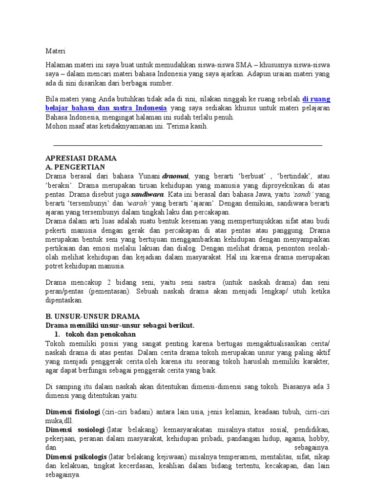 Drama modern merupakan sebuah tontonan drama menggunakan naskah. Drama tradisional merupakan sebuah tontonan drama yang tidak menggunakan naskah. Teks drama adalah materi bahasa indonesia yang akan kita pelajari kali ini.