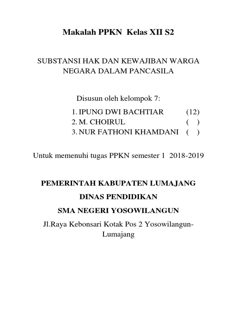 Makalah substansi hak dan kewajiban asasi manusia dalam pancasila. 201013045 universitas abdurrachman saleh situbondo fakultas ekonomi 2010 2011 kata pengantar puji dan syukur kehadirat allah swt karena hanya dengan berkat rahmat dan hidayah nya jualah saya dapat menyelesaikan tugas makalah mata kuliah pendidikan kewarganegaraan yang berjudul hak asasi manusia. ΓΈ hak untuk mempunyai hak milik pribadi hak untuk hidup hak untuk tidak disiksa hak kemerdekaan pikiran dan hati nurani hak beragama hak untuk tidak diperbudak hak untuk diakui sebagai pribadi di hadapan hukum dan hak untuk tidak dituntut atas dasar hukum yang berlaku surut adalah hak asasi manusia yang tidak dapat dikurangi dalam keadaan apapun. Substansi hak dan kewajiban asasi manusia tahukah kamu apa substansi hak dan kewajiban asasi manusia dalam nilai dasar instrumental dan praksis sila sila pancasila.
