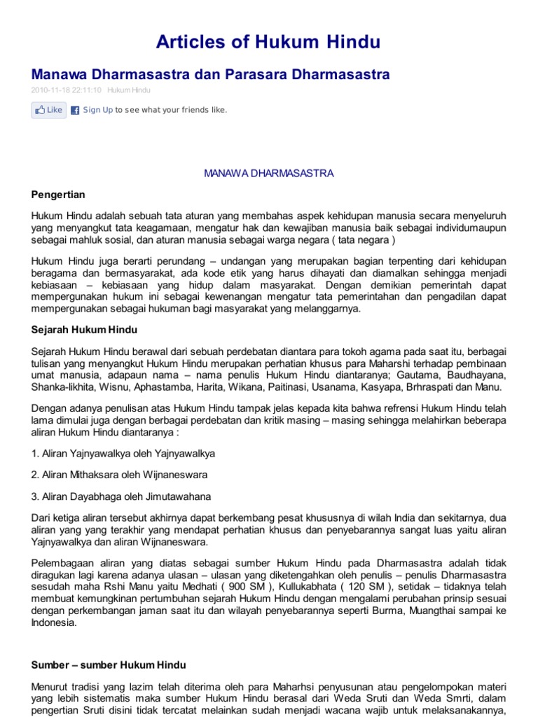Academia edu is a platform for academics to share research papers. Baik sruti maupun smerti keduan ya merupakan sumber hukum hindu. Mengengenai konsepsi hukum hindu ini dalam makalah seminar cendikiawan hindu indonesia 16 17sepetember 1988 telah di uraikan secara panjang lebar terutama sekali dalam bagian mengenai tinjauan umum tentang hukum hindu.