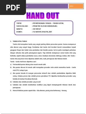 Makalah tanda tanda vital lengkap. Makalah tanda tanda vital. Memberi dukungan dan jaminan kepada pasien administrasi nitrogliserin. Hal inilah yang membuat penulisan makalah dengan judul prosedur pemeriksaan tanda tanda vital.