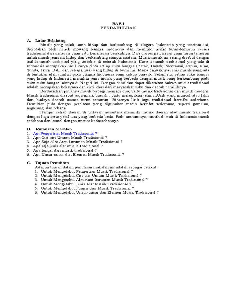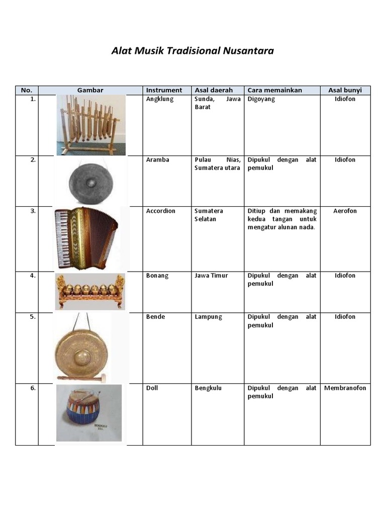 Makalah tentang alat musik tradisional nusantara. Indonesia adalah sebuah negara yang terdiri dari ribuan pulau yang terbentang dari. Musik tradisi memiliki karakteristik khas yakni syair dan melodinya menggunakan bahasa dan gaya daerah setempat. Kurangnya media pembelajaran atau informasi tentang cara memainkan alat musik tradisional.