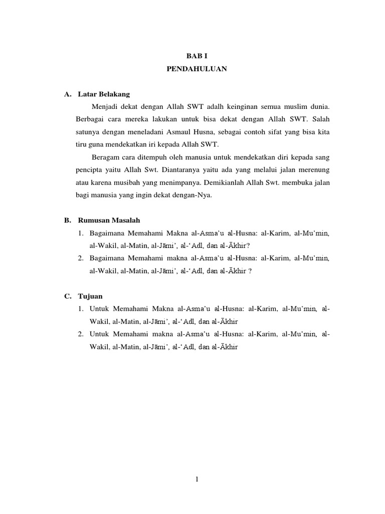Makalah tentang asmaul husna al adl. Nama nama indah asmaul husna yang berjumlah 99 menurut hitungan ulama sunni dapat dirangkai secara kronologis begitu indah ibarat seuntai tasbih dimulai dengan lafadz al jalalah allah dengan angka 0 nol yang di anggap angka kesempurnaan disusul dengan al rahman al rahim dan seterusnya sampai angka ke 99 al sabur dan kembali lagi ke angka nol allah al jalalah atau kembali lagi ke. Al adl yang maha adil. Ar rauf al barr al hakim al fattah al adl al qayyum dan seterusnya.