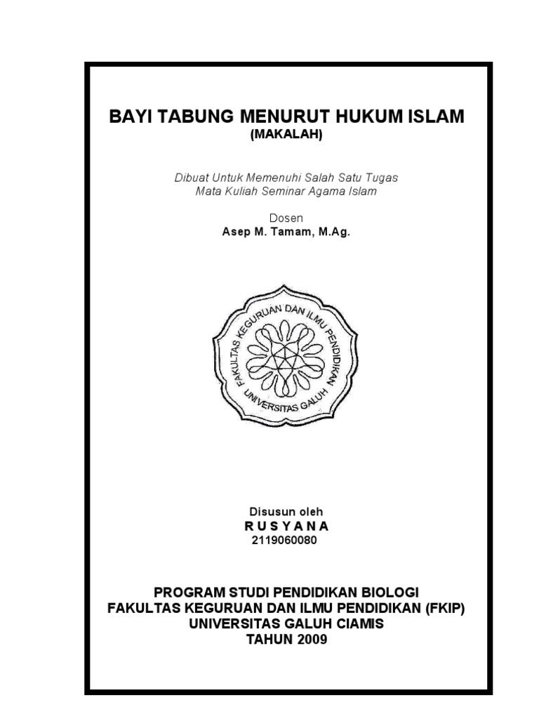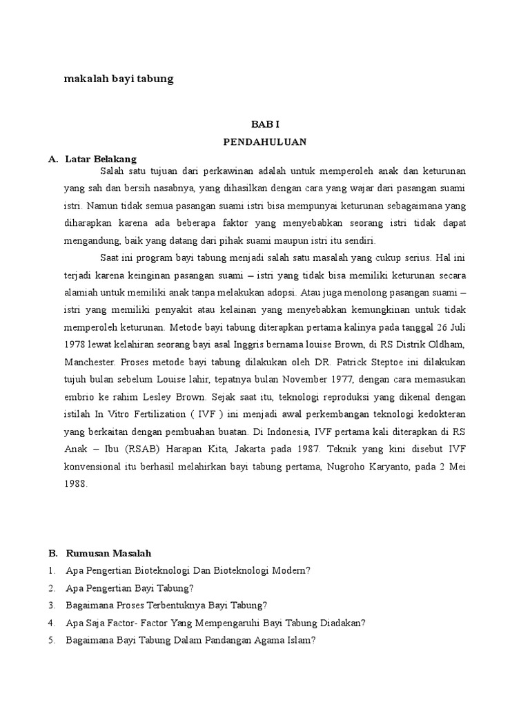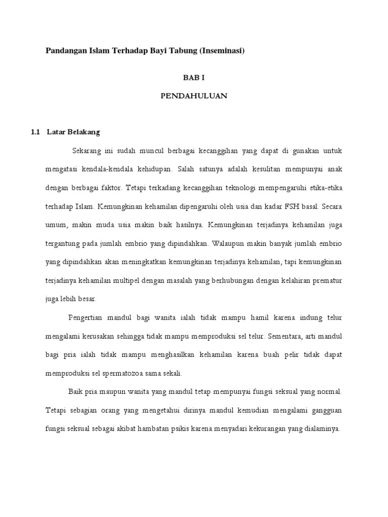 Makalah tentang bayi tabung dalam islam. Makalah bayi tabung menurut pandangan agama islam kata pengantar. Ulama di malaysia yang tergabung dalam jabatan kemajuan islam malaysia memberi fatwa tentang bayi tabung yang menghasilkan keputusan sebagai berikut. Mengenai makna dan jenisnya cukup beragam ada gift gamete intrafallopian transfer bayi tabung fertilisasi in vitro zift zygote intrafallopian transfer icsi injeksi sperma intracytoplasmic.