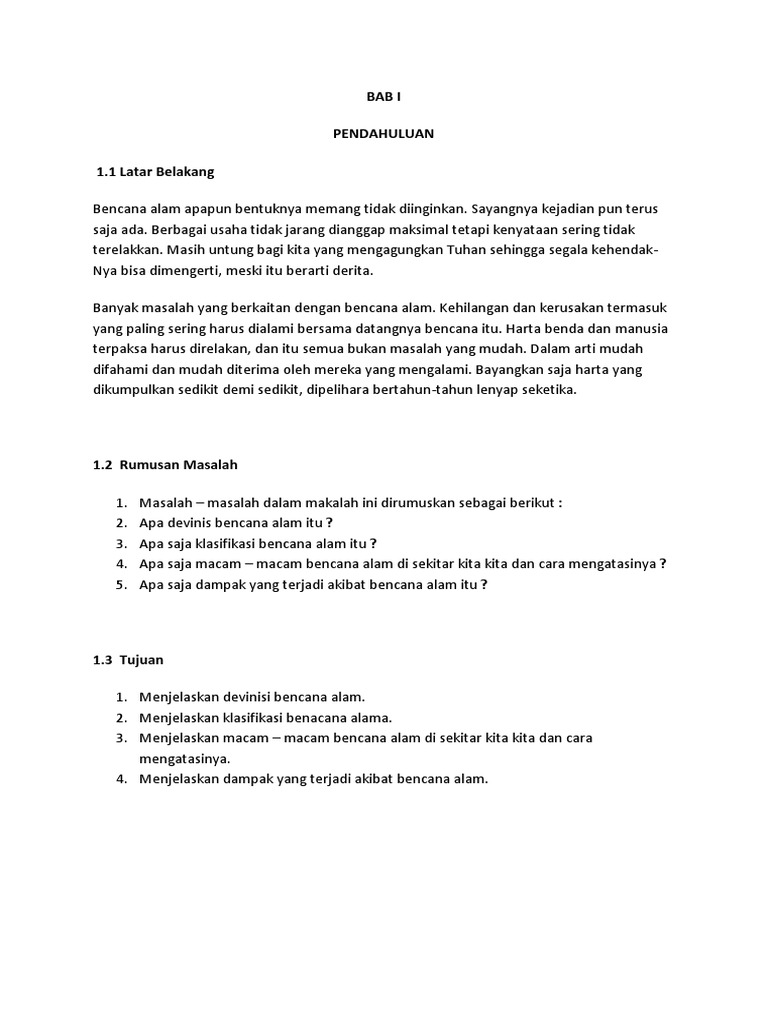 Makalah tentang bencana alam. Menambah pengetahuan tentang bencana alam mengetahui sebab sebab terjadinya bencana alam mengetahui cara penaggulangan bencana alam yang terjadi ruang lingkup ruang lingkup penulisan makalah ini adalah mencakup bencana alam yang terjadi di beberapa wilalayah indonesia saat ini yaitu bencana gempa bumi bencana banjir bandang bencana tanah. Sebenarnya gejala alam merupakan gejala yang sangat alamiah dan biasa terjadi pada bumi. Bencana alam juga dapat diartikan sebagai bencana yang diakibatkan oleh gejala alam.