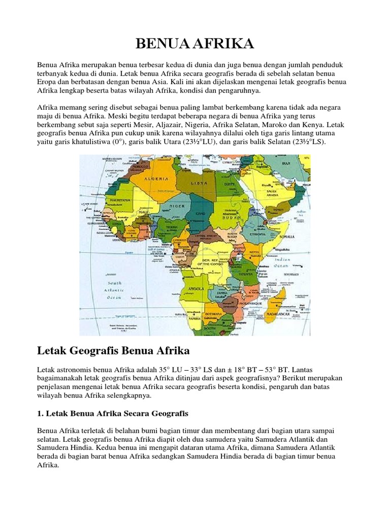 Letak luas dan batas. Artikel ini nanti akan membahas lebih dalam tentang benua afrika. Benua ini terkenal dengan bangsa negronya.