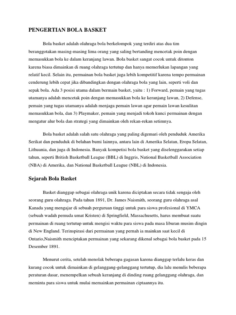 Makalah tentang bola basket indonesia. Bahwasanya saya telah dapat membuat makalah tentang olahraga bola basket walaupun banyak sekali hambatan dan kesulitan yang saya hadapi dalam menyusun makalah ini dan mungkin makalah ini masih terdapat kekurangan dan belum bisa dikatakan sempurna dikarenakan keterbatasan kemampuan saya. Dengan begitu ke depannya basket kemungkinan besar. Permainan ini seringkali disebut basket saja.
