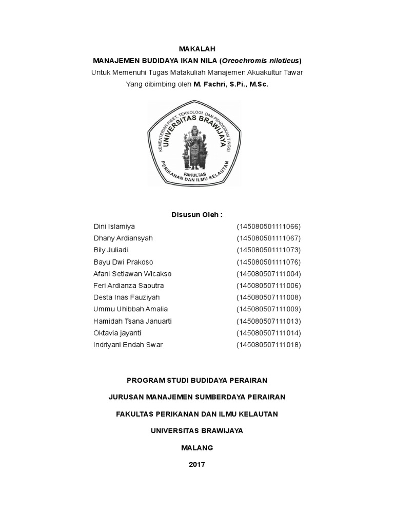 Makalah budidaya ikan nila kata pengantar. Kata pengantar dengan menyebut nama allah swt yang maha pengasih lagi maha panyayang kami panjatkan puja dan puji syukur atas kehadirat nya yang telah melimpahkan rahmat hidayah dan inayah nya kepada kami sehingga kami dapat menyelesaikan makalah tentang budidaya ikan nila. Mahasiswa dapat mengetahui apa saja persyaratan lokasi budidaya ikan nila.