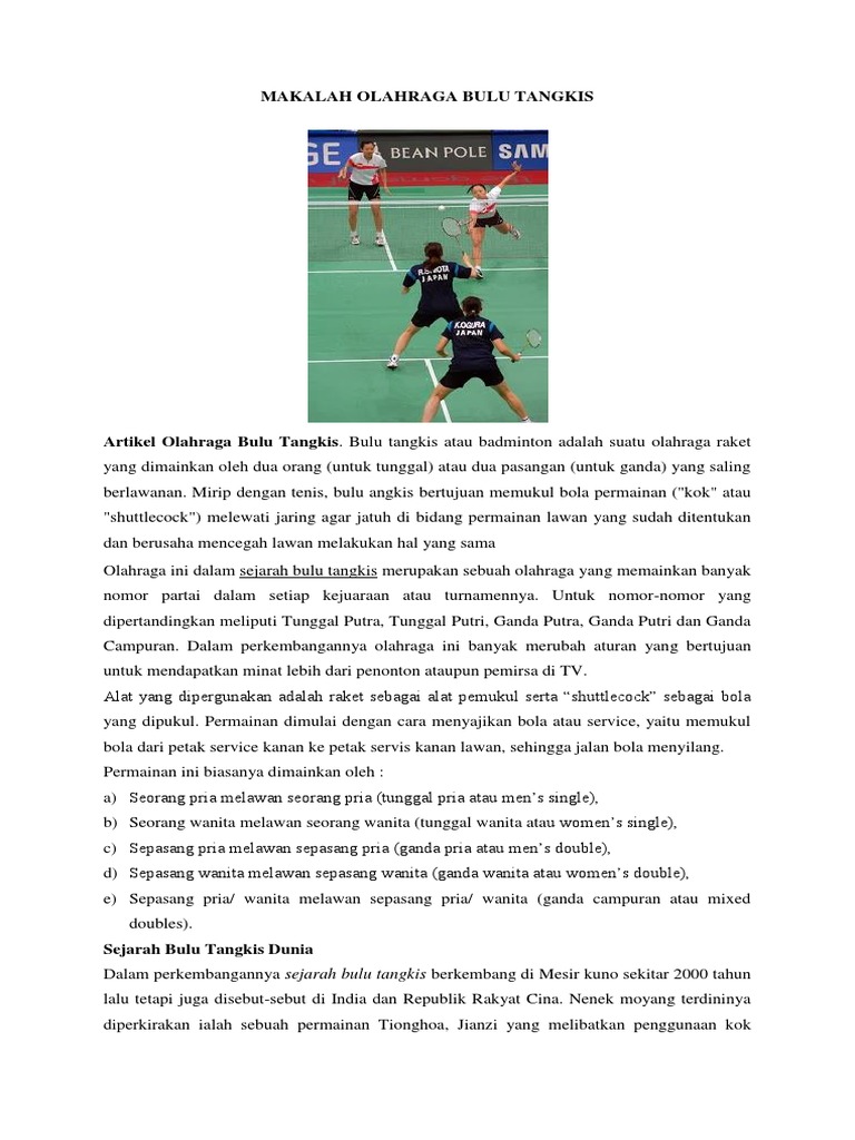 20 Makalah Tentang Bulu Tangkis Lengkap Dengan Gambarnya Pdf Update