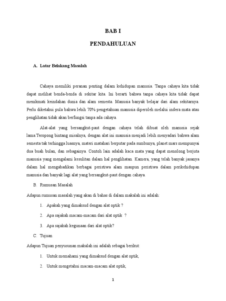 1 4 manfaat diharapkan dari pembuatan makalah ini dapat dijadikan sebagai sumber bacaan dan literature bagi pihak pihak yang membutuhkan. Penulisan makalah ini bertujuan untuk mengetahui tentang sumber dan sifat cahaya fotometri alat ukur cahaya cara penggunaan sinar dalam bidang kedokteran dan laser. Kesimpulan alat alat optik adalah alat alat yang salah satu atau lebih komponennya menggunakan benda optik.