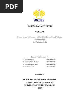 Makalah tentang cahaya dan alat optik. Alat optic adalah alat optik adalah alat alat yang salah satu atau lebih komponennya menggunakan benda optik misalnya cermin lensa atau prisma. Menjelaskan pemantulan pada cermin datar cermin cekung dan cermin cembung 5. Optika yakni mengenai konsep cahaya dan alat alat optik.