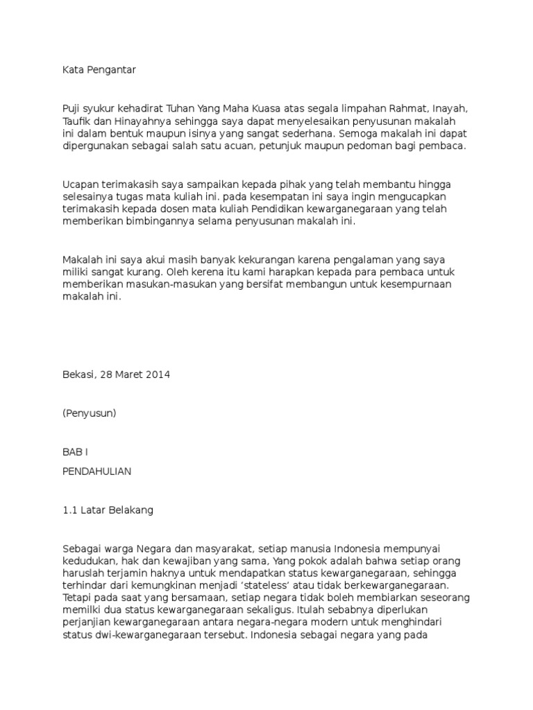 Makalah tentang hak dan kewajiban warga negara terhadap negara. Seperti apakah hak dan kewajiban tersebut yang seharusnya dipertanggungjawabkan oleh setiap warga negara. Demikianlah materi tentang makalah hak dan kewajiban warga negara yang sempat kami berikan. Hak dan kewajiban merupakan suatu hal yang terikat satu sama lain sehingga dalam praktik harus dijalankan dengan seimbang.