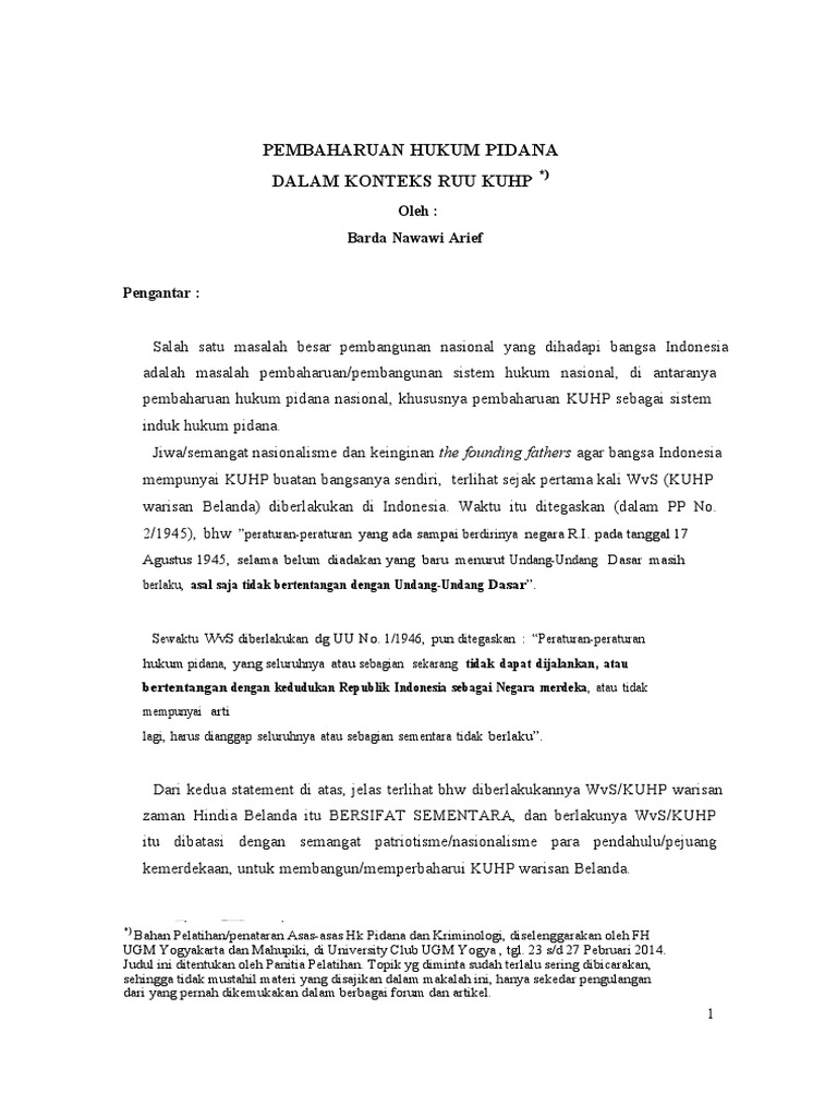 Makalah tentang hukum pidana di indonesia. Sebagian besar sistem yang dianut baik perdata maupun pidana berbasis pada hukum eropa kontinental khususnya dari belanda karena aspek sejarah masa lalu indonesia yang merupakan wilayah jajahan dengan sebutan hindia belanda nederlandsch indie. Di samping kuhper hukum perdata indonesia itu meliputi juga perundang undangan hukum perdata buatan pembentuk undang undang republik indonesia misalnya undang undang perkawinan no 1 tahun 1974 undang undang pokok agraria no 5 tahun 1960 keputusan presiden n0 12 tahun 1983 tentang penataan dan peningkatan pembinaan penyelenggaraan catatan sipil. Didalam kuhp juga didalam perundang undangan pidana yang lain.