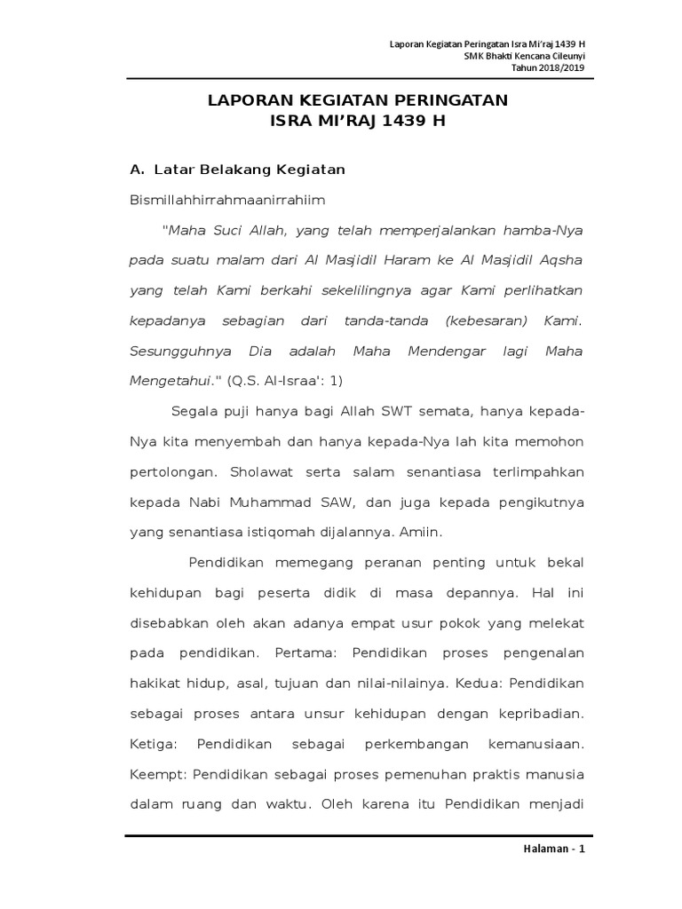 Proposal kegiatan peringatan isra mi raj nabi muhammad saw 1433h 2012 m i. Sebelum hijrah ke madinah. Isra mi raj adalah peristiwa luar biasa yang dialami oleh nabi muhammad saw.